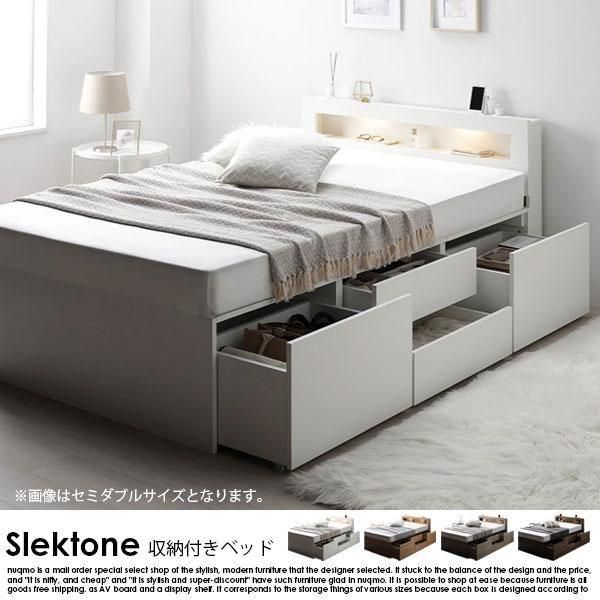 引き出し4杯大容量ベッド LED照明付きタイプ Slektone【スレクトーン】セミダブル 薄型国産ポケットコイルマットレス付き